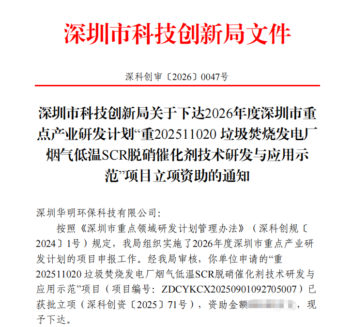 近日,由我司牵头申报的《重202511020垃圾焚烧发电厂烟气低温SCR脱硝催化剂技术研发与应用示范》项目,经过严格的形式审查、专家评审和综合评议,成功获得深圳市重点产业研发计划立项。该课题是公司继此前成功开发150-160℃超低温SCR脱硝催化剂后,联合高校向150℃以下更高难度的超低温SCR脱硝催化技术的深入探索。此次成功立项,是公司在关键核心技术研发与产学研协同创新方面的又一重要成果,也为公司在可持续发展领域的技术布局注入了强劲的创新动能。
